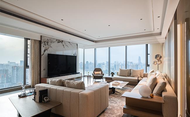 以 “簡奢通透的都市棲居” 為核心:用白灰基底鋪陳開闊感,隱形式柜體消弭冗余,深色框線與暖光勾出精致層次??筒蛷N無界銜接,既?;有杂诛@通透;跳色餐椅與綠植輕注活力,城市窗景引自然入室。設計以 “克制的精致” 平衡極簡與質感,讓空間在整潔框架里,承載松弛的日常,成為都市里兼具體面與舒適的棲身場域。
